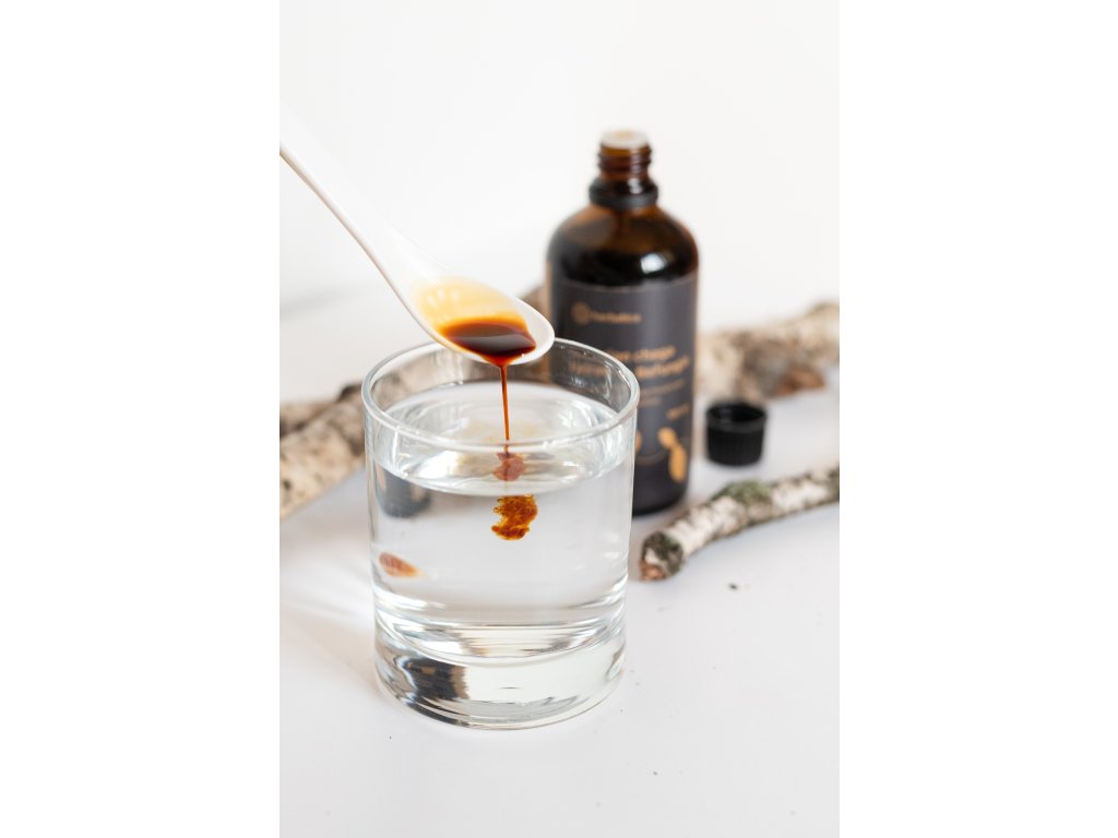 Zloženie: | Dvojitý extrakt z čagy sibírskej (ryšavec šikmý/Inonotus Obliquus), etanol 50%, voda, podiel huby v extrakte 1:5 |