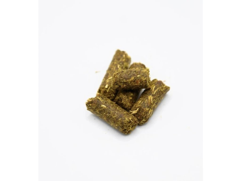 | Zloženie:: | Mrkvové výlisky, slnečnicové semena, CBD, konopný olej, nechtík lekársky, citrónová tráva. |