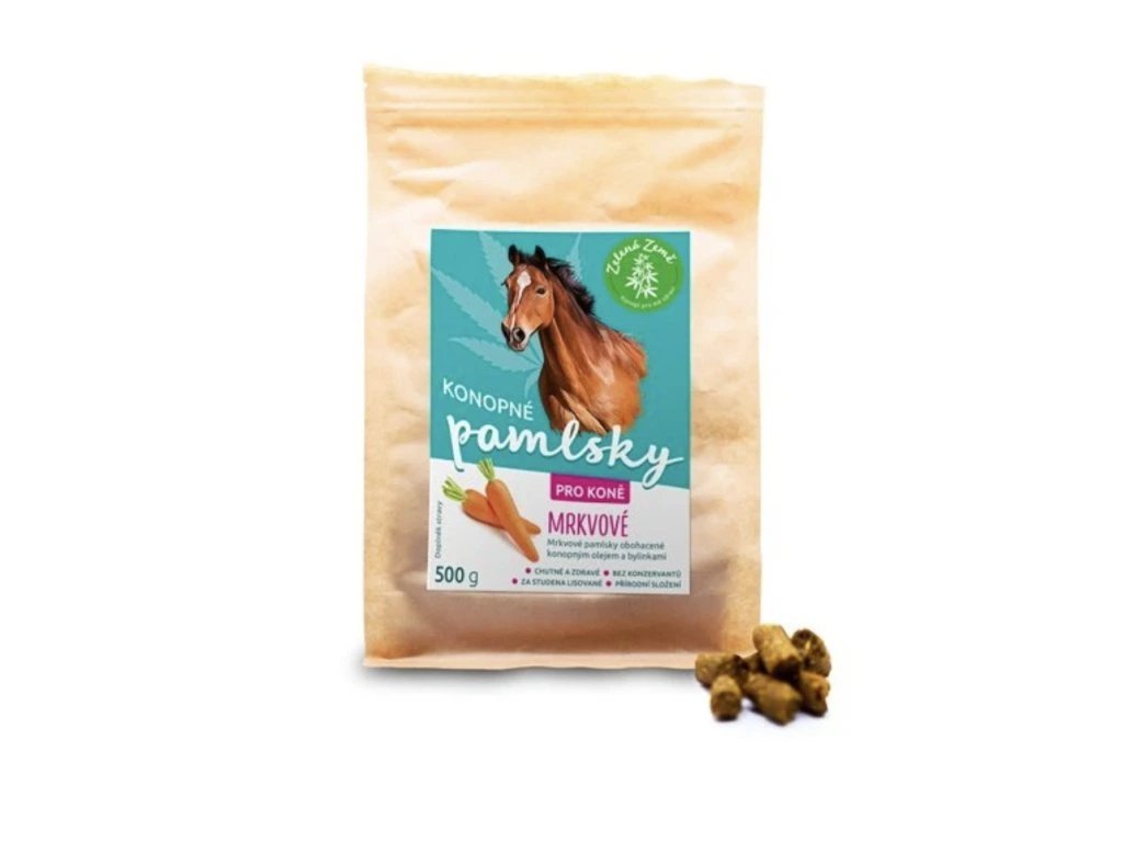 Konopné maškrty pre kone – príchuť mrkva - 500 g - Zelená Země