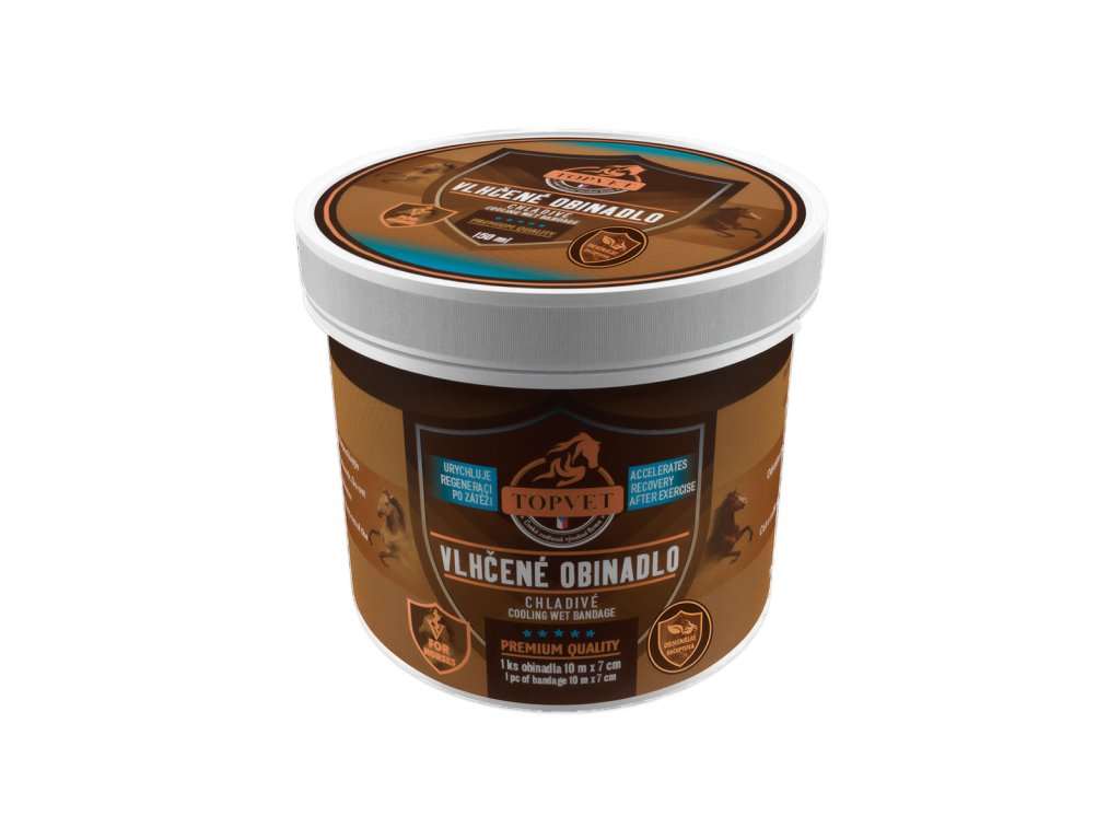 Vlhčený chladivý obväz je praktický veterinárny prípravok určený na podporu regenerácie pohybového aparátu koní po fyzickej záťaži. Elastické obinadlo je napustené účinnou bylinnou kompozíciou s obsahom prírodných extraktov a silíc, ktoré pôsobia chladivo, uvoľňujúco a regeneračne.