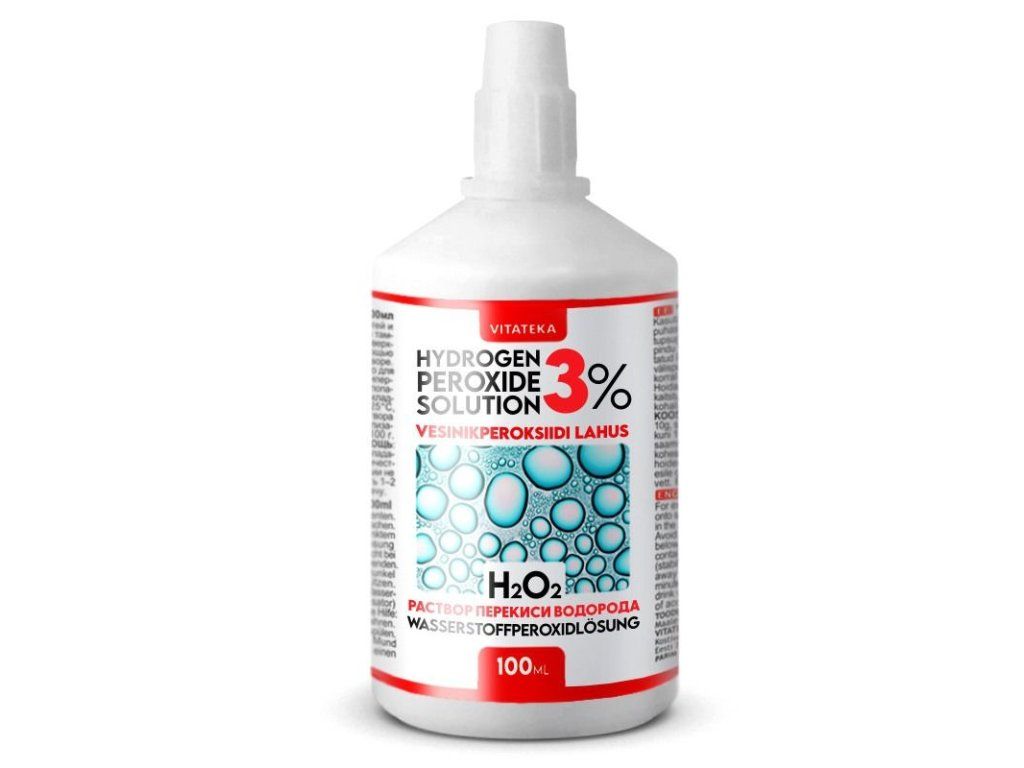 | Zloženie: | Peroxid vodíka 3 % (10 g na 100 g), stabilizátor (benzoan sodný), čistená voda do 100 g. |