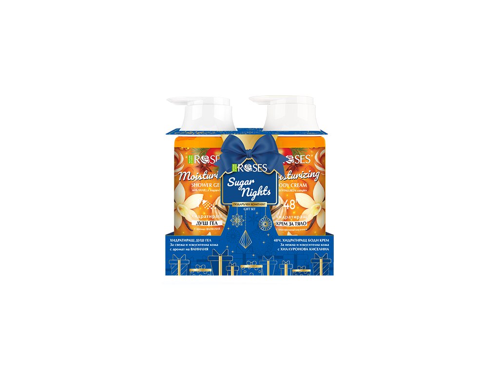 ROSES Darčekový set Sugar Nights je navrhnutý ako harmonická kombinácia sprchového gélu a telového krému, ktoré spolu vytvárajú kompletný rituál starostlivosti o pokožku. Neodolateľná vôňa vanilky premieňa každodennú hygienu na príjemný relaxačný zážitok a zanecháva pokožku sviežu, hebkú a zmyselne prevoňanú.