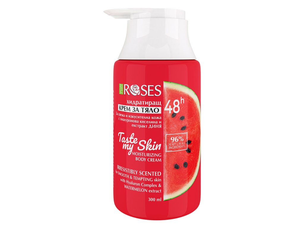 Vďaka účinnej kombinácii kyseliny hyalurónovej, prírodnej ružovej vody a ovocných extraktov pomáha krém obnovovať prirodzenú hydratáciu pokožky, zlepšovať jej elasticitu a chrániť ju pred vysušovaním. Pokožka je po použití hladká, jemná a príjemne prevoňaná sviežou vôňou šťavnatého melóna.